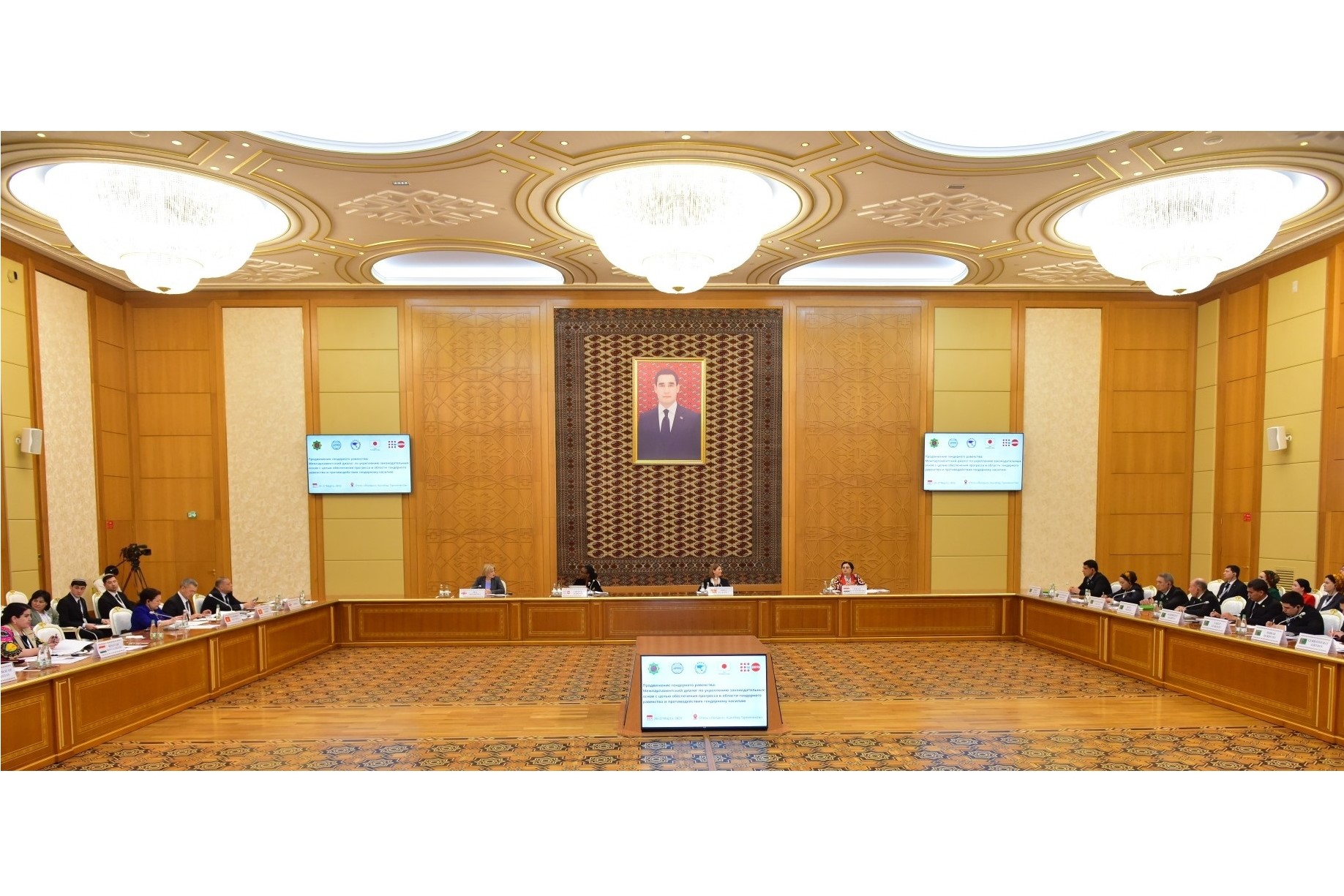 Türkmenistanyň Mejlisi bilen Birleşen Milletler Guramasynyň Ilat Gaznasynyň (UNFPA)  bilelikde geçirýän «Gender deňligini ilerletmek: gender deňligi we gender zorlugyna garşy göreşmekde kanunçylyk esaslaryny berkitmek boýunça Parlamentara dialogy» atly maslahatynyň «Gender deňligini hem-de zenanlaryň hukuklaryny ilerletmekde halkara kanunçylyk kadalarynyň esaslary we olaryň ýerine ýetirilmeginde parlamentleriň orny» atly 1-nji mejlisi geçirildi.